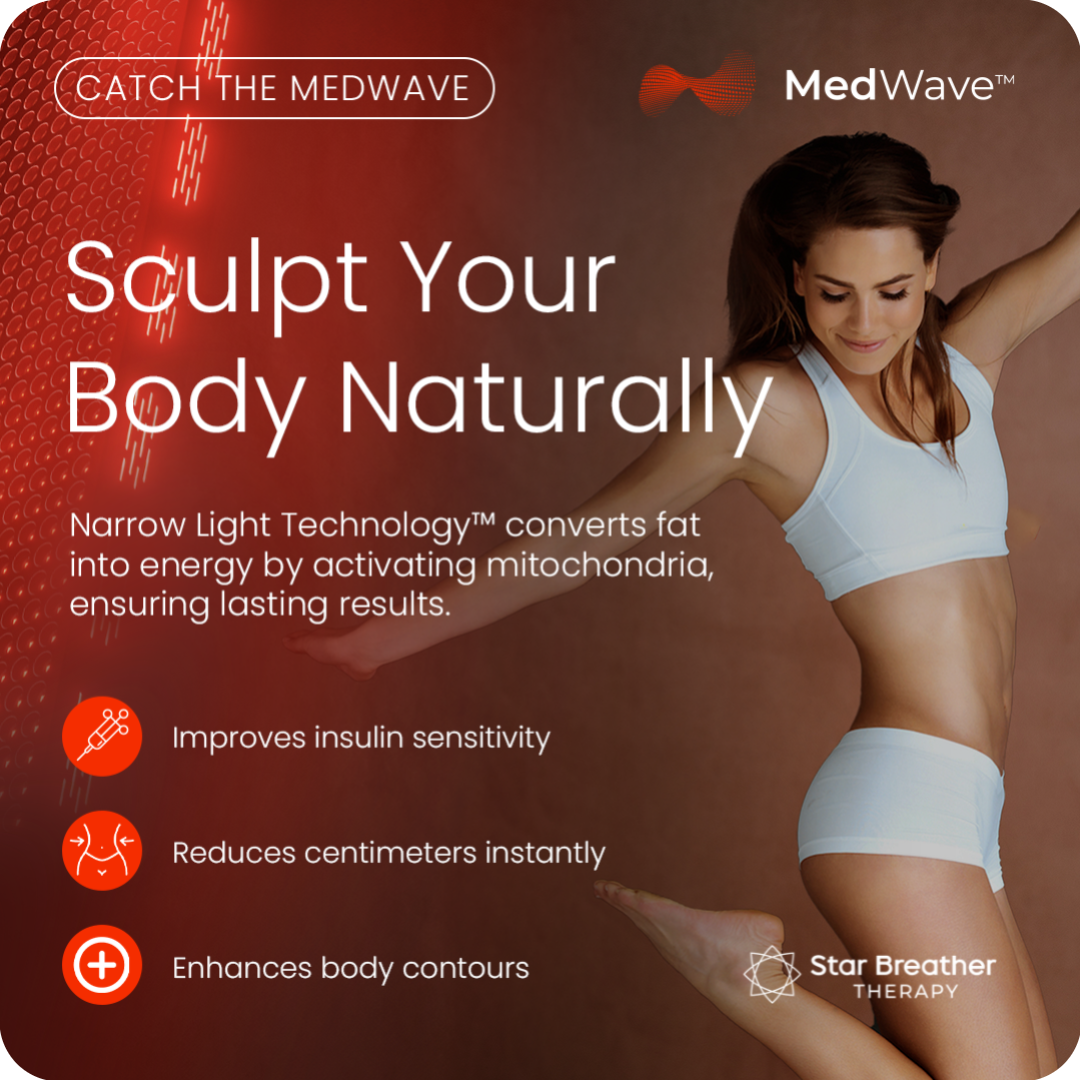 After the WBV session stimulates circulation and fat release, MedWave Narrow Light Therapy completes the cycle by activating your body’s cellular energy systems.